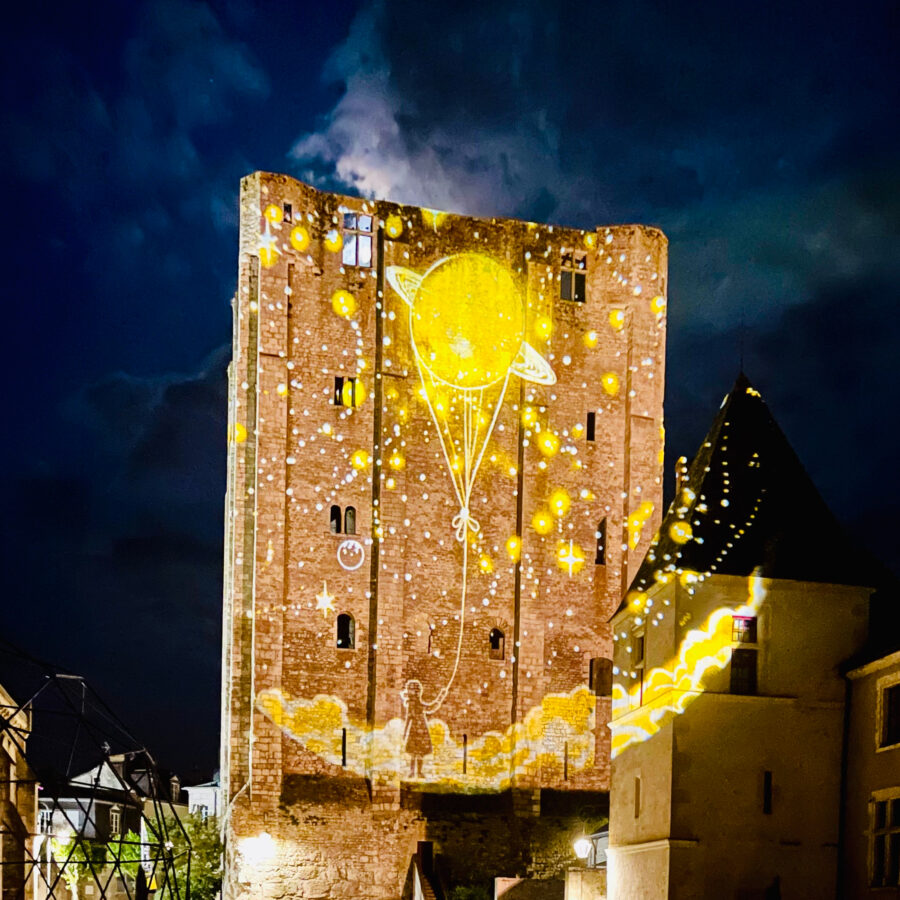 Situé le long de la Loire, entre Orléans et Blois, à 2h au sud de la Loire, les origines du château remontent au XIe siècle. Construit sous l’impulsion des seigneurs de Beaugency pour contrôler l’accès au pont qui traverse la Loire, le château a traversé les siècles sans connaître ni troubles ni bouleversements. Modernisé en château de la Renaissance par Jean Dunois puis Jean d’Orléans-Longueville, l’édifice a ensuite été choisi pour héberger un dépôt de mendicité avant d’ouvrir ses portes aux regards curieux des visiteurs. Désormais, métamorphosé en château de lumières, le château se pare de milliers de pixels. Habillé de lumières, résonnant de musiques électroniques, (ré)animé au rythme des projecteurs, le château de lumières saura émerveiller les plus petits comme les plus grands.