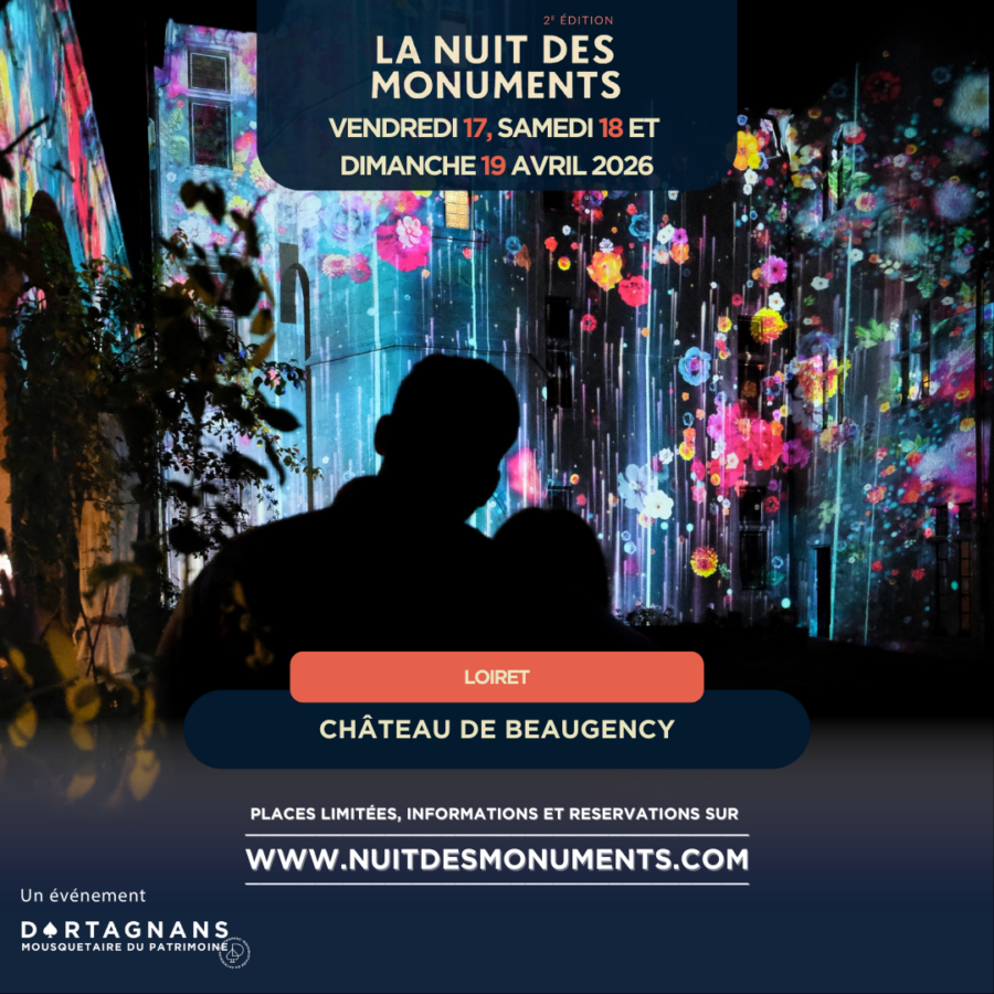 Situé le long de la Loire, entre Orléans et Blois, à 2h au sud de la Loire, les origines du château remontent au XIe siècle. Construit sous l’impulsion des seigneurs de Beaugency pour contrôler l’accès au pont qui traverse la Loire, le château a traversé les siècles sans connaître ni troubles ni bouleversements. Modernisé en château de la Renaissance par Jean Dunois puis Jean d’Orléans-Longueville, l’édifice a ensuite été choisi pour héberger un dépôt de mendicité avant d’ouvrir ses portes aux regards curieux des visiteurs. Désormais, métamorphosé en château de lumières, le château se pare de milliers de pixels. Habillé de lumières, résonnant de musiques électroniques, (ré)animé au rythme des projecteurs, le château de lumières saura émerveiller les plus petits comme les plus grands.